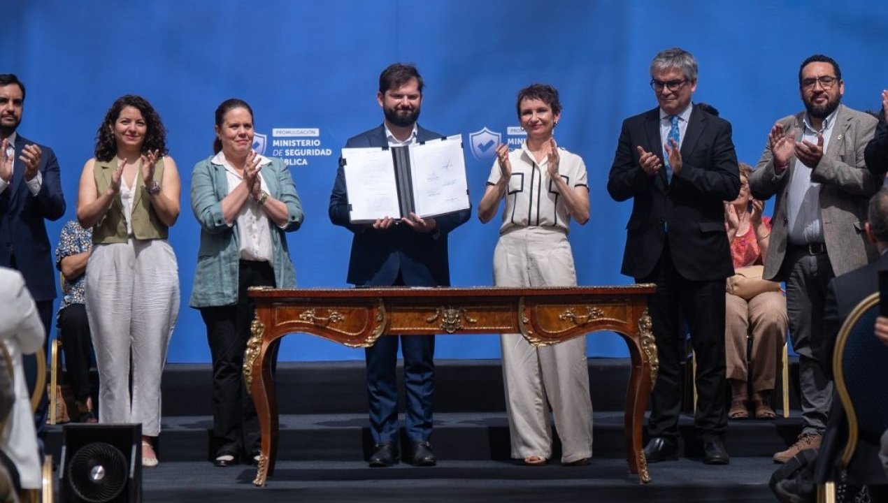 El residente Gabriel Boric encabezó la promulgación de la ley que crea el nuevo Ministerio de Seguridad Pública.
