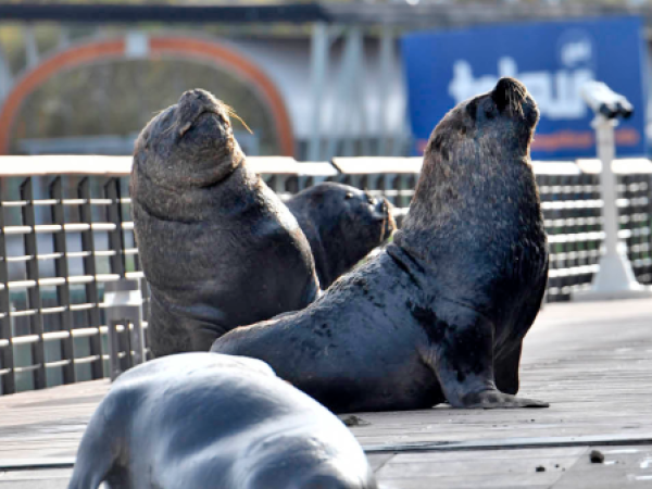 Lobo marino usó el capó de un colectivo para descansar en Valdivia