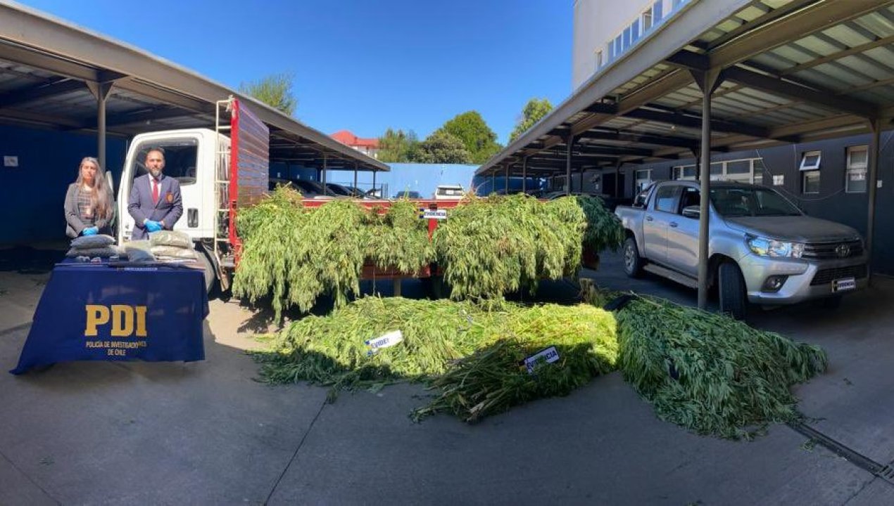 En concreto, se decomisaron 690 plantas de marihuana que se encontraban en cuatro invernaderos al interior de la comunidad y tres kilos de cannabis a granel; una escopeta de calibre 12, una camioneta y un camión tres cuartos.