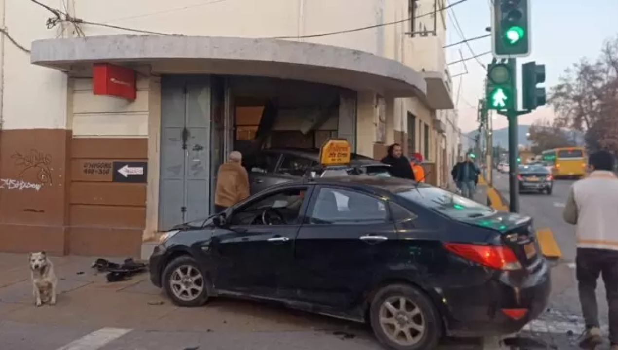 Quillota: Auto chocó y quedó incrustado en el acceso de Correos de Chile