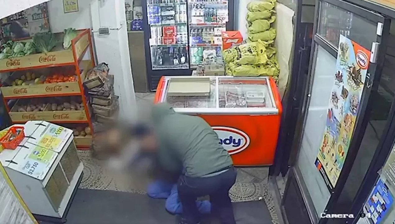 En respuesta a la situación, el propietario del local de Talcahuano se tiró al suelo y simuló estar sufriendo un ataque epiléptico, lo cual fue captado por las cámaras de seguridad.