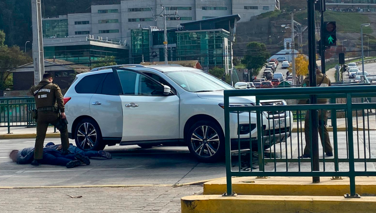 AHORA VIÑA DEL MAR: Carabineros debió realizar una serie de disparos para detener a los ocupantes de un automóvil que intentó atropellarlos para darse a la fuga en calle Vicuña Mackenna frente al colegio Mackay en Reñaca. Hay detenidos pic.twitter.com/ZX5O0lmDyl