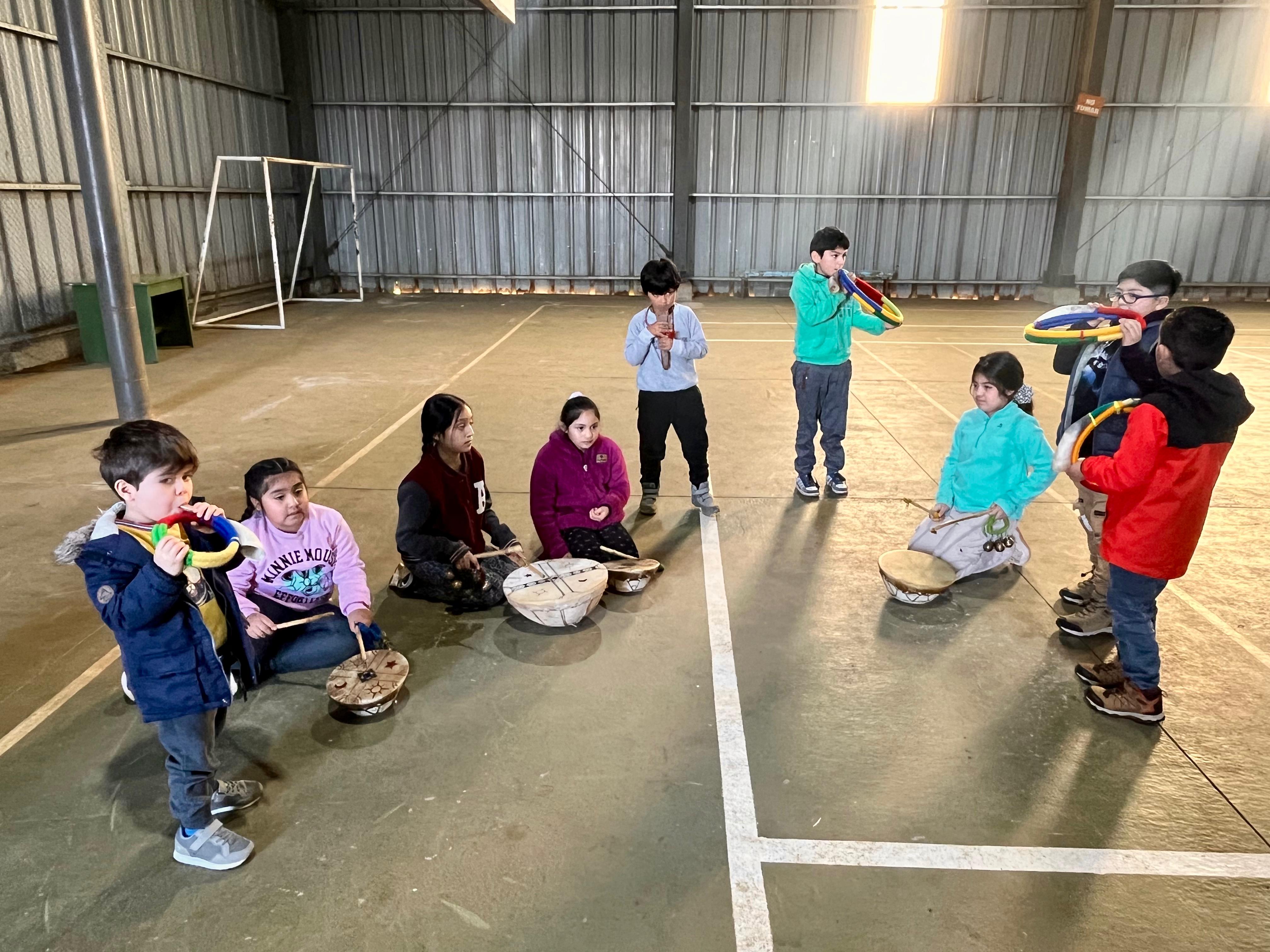 En las dependencias de la sede Villa El Bosque, y bajo la atenta mirada de los niños y niñas del barrio, el profesor Sergio Millacura entregó un taller en el que enseñó sobre la espiritualidad, la conexión con la tierra y tradiciones del pueblo indígena. Posteriormente, se invitó a los presentes a conocer y practicar con instrumentos musicales como el kultrún, trutruka y el trompe.