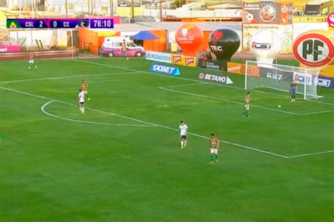 Corría el minuto 76 de partido cuando el arquero de Cobresal, Leandro Requena, lanzo un zapatazo desde su propia meta que pasó la mitad de la cancha y sorprendió a un adelantado Bryan Cortés que, pese a los esfuerzos, no logró llegar al balón antes de que entrara en su portería.