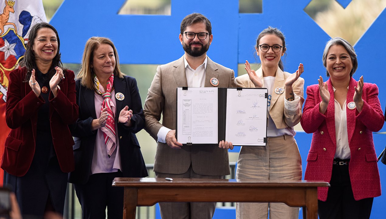 En la ceremonia de promulgación estuvo presenta la ministra del Trabajo, Jeannette Jara, y la ministra vocera de Gobierno -y una de las autoras del proyecto en su pasado como diputada-, Camila Vallejo.