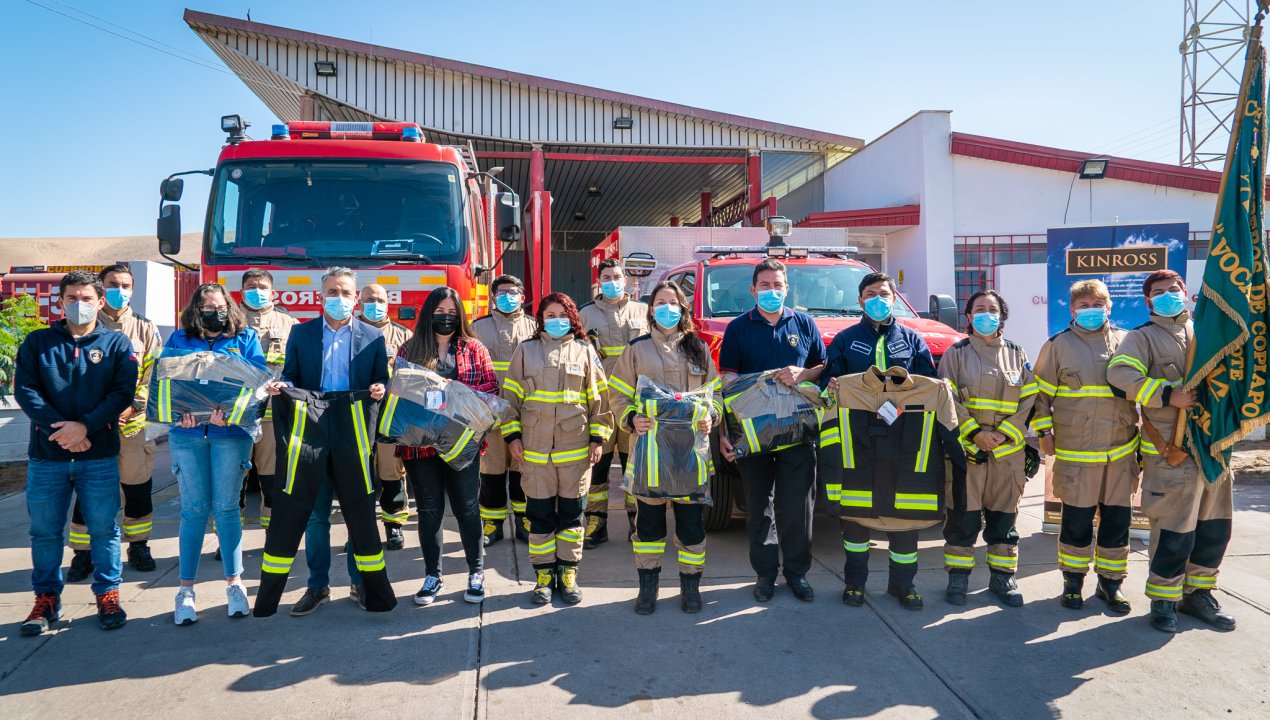Voluntarios de la 5ta compañía del Cuerpo de Bomberos de Copiapó recibió este martes 3 de mayo un total de 55 tenidas de rescate ignifugas, gracias a una donación gestionada por Minera Kinross, en respuesta a una solicitud que realizaron los integrantes de la unidad de emergencia asentada en la comunidad de Paipote.