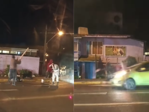 VIDEO: Pareja comete acto de vandalismo contra camión en plena vía pública