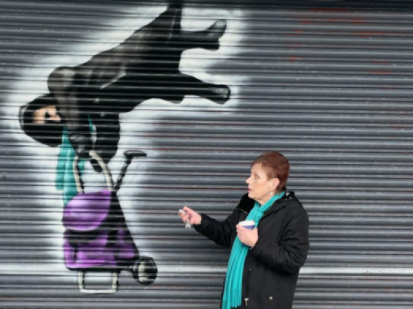 Homenajean con un grafiti a mujer que quedó colgando en cortina de seguridad